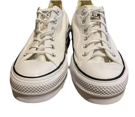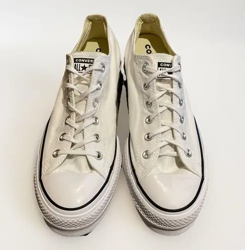 Chuck Taylor All Star, Converse, white and black, platform lift, canvas, lace-up, low top sneaker, s... Show more
