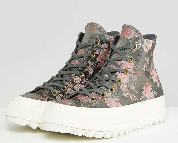 Converse CTAS Lift Ripple Hi River Rock/Floral/Egret Platform Sneakers Size 7.5. Pre-owned with norm... Show more