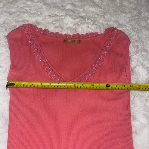 Coral pink Belldini sleeveless ribbed sweater top shirt beaded neckline Large - $15 - From Renee