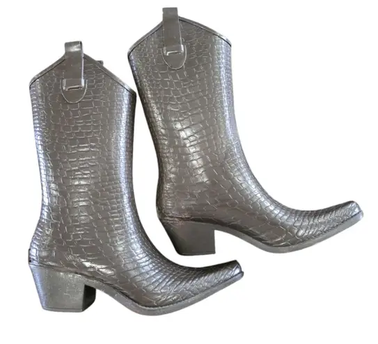 Corkys Women's Rain Tall Boots Crockodile Brown Green Size 7 Rubber Western Work - $35 - From Carla