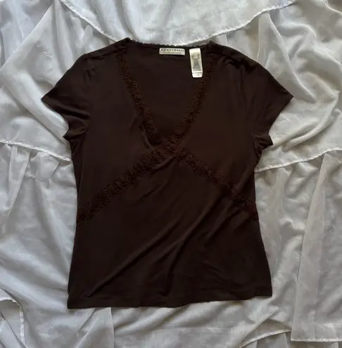 Crazy Horse By Liz Claiborne Brown Lace Trim Top Size XL - $15 - From Jayla