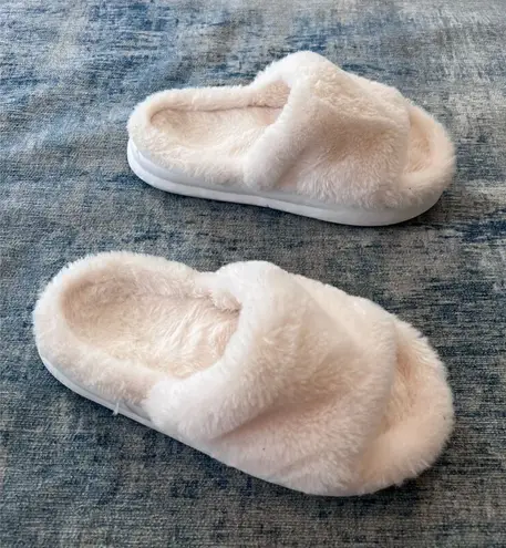 Cream Faux Fur Platform Slipper Slides Euro 40 - 41 US Size 7.5 Super soft cream colored slipper slides. Approx 1 inch tall platform. Euro size 40 - 41 is approx a US Size 7.5 TUF