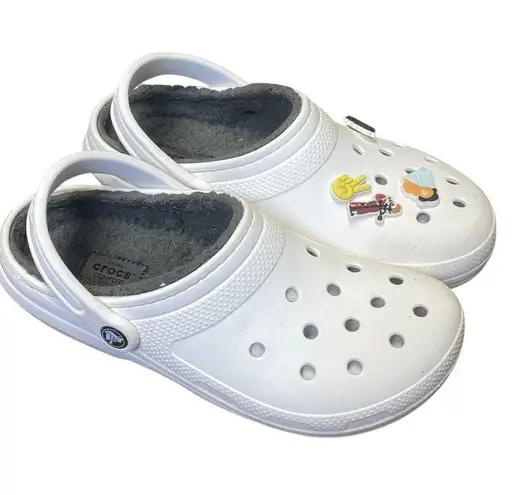 Crocs Classic Faux Fur Lined White Dual Comfort Clog Shoes Womens Size 9 Mens Size 7 Jibbitz in... Show more