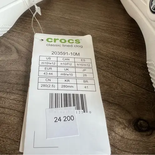 B1869 - 24200 Crocs Classic Lined Unisex White / Grey Clog New with tags Men’s Size 10 Women’s Size... Show more