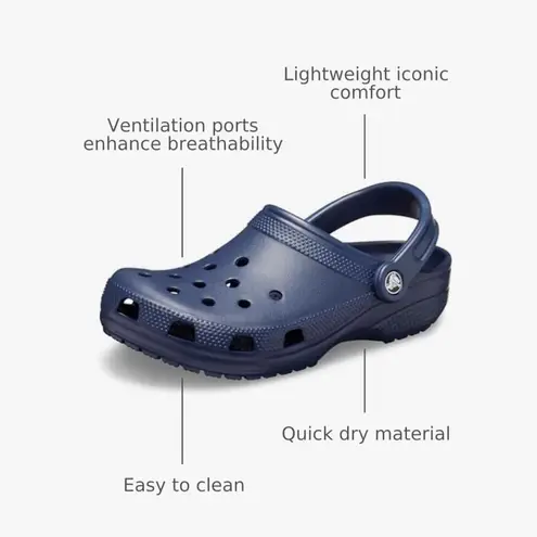 Authentic Crocs Classic Clogs in Navy Blue, Size 11. Lightweight, breathable, and water-friendly wit... Show more