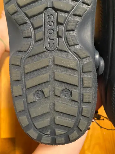 Worn but still in good condition. Women’s 8 men’s 6. Dark blue/ navy color with gray fuzzy inside.