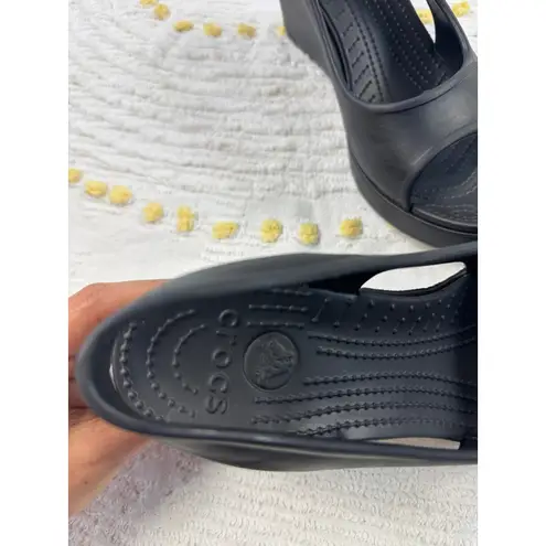 Step into effortless chic with these sleek black Crocs wedge sandals. This pair delivers a sophistic... Show more