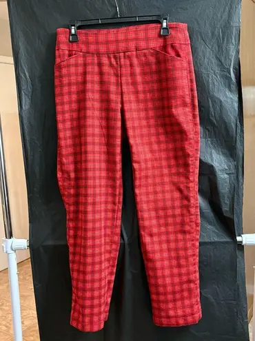 Vibrant red plaid pants with stretch fabric. Comfortable and stylish. EUC. Approximate measurements... Show more