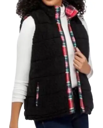 A versatile reversible vest for women, offering two distinct looks. One side features a cozy black s... Show more