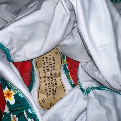 Love this style! Dark forest green with cute white flowers! Has black trim design! Built in padding... Show more
