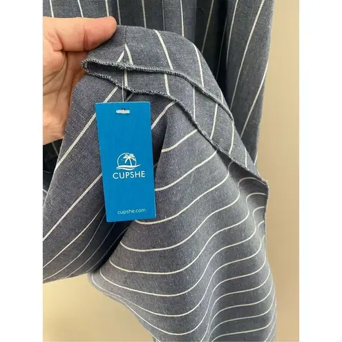 Woman’s Cupshe dress NWT size large Blue and white striped Rushing detail on front and back with lo... Show more