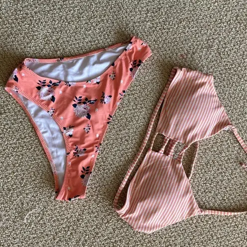 Cupshe Orange Bikini Two Piece Swimsuit Orange Size Medium Floral Striped EUC Excellent used condit... Show more