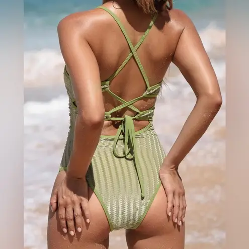 Dive into style with this elegant green ruched one-piece swimsuit. Perfect for a chic beach look! Go... Show more