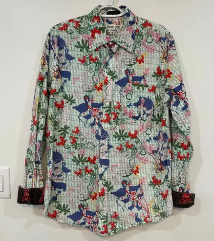 Custo Barcelona Womens Blouse Large Button Down Novelty Mix Print Collar Cotton - $49 - From Kelsey