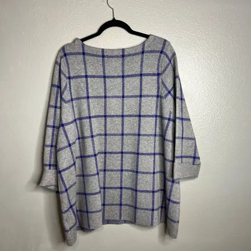 Flatlay Measurements: bust 24" length 29" Cynthia Rowley Woman gray and blue plaid sweater top. Th... Show more