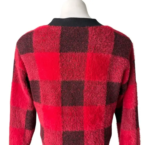 Cyrus Red/ Black Buffalo Plaid Button Down Fuzzy Cardigan Sweater. V-Neck, long sleeve, button down... Show more