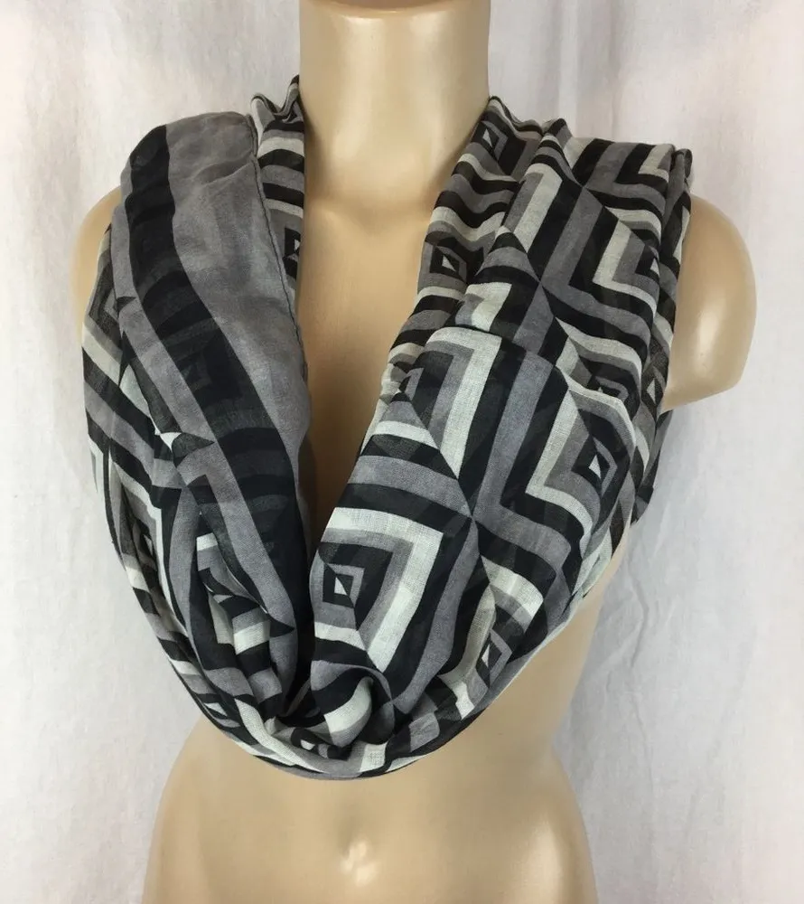 Black Gray & White Geometric Print Rectangular Infinity Scarve Scarf - $20 - From Designer