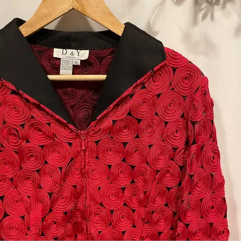 Vintage 80’s tuxedo rad 3D swirl mesh black collar french cuff zip front jacket Red Size XL - $34 - From Ruth