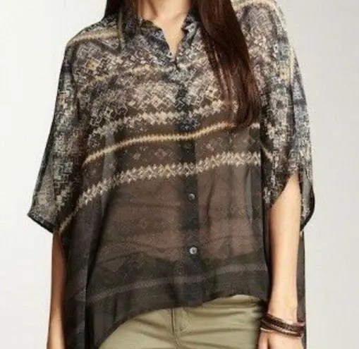 100% Silk Hilow Sheer Patterned Button Up Blouse ( XS/S ) Multiple - $53 - From Melissa