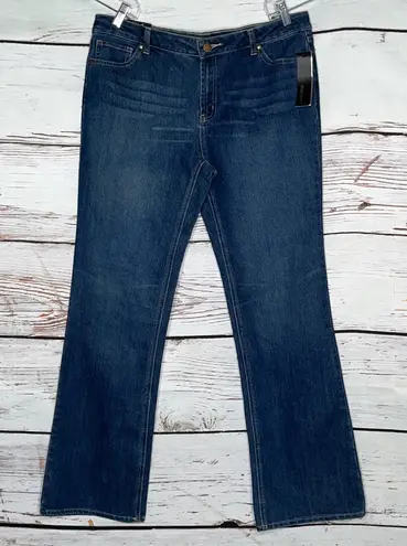Daisy Fuentes Size 14 Blue Denim Mid Rise Bootcut Jeans. Belt Loops. Button with Zipper Closure. 5 Pockets. Cotton, Polyester & Spandex Blend. NWT, Brand New with Tags. Length is 42”, Inseam is 32” & Waist is 18”. Measurements taken while garment is laying flat.