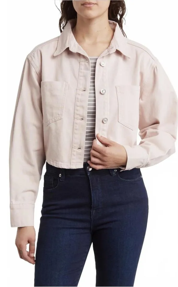 New with tag detached. Never worn. 100% cotton Front button closure Spread collar Front patch pockets Casual slouchy denim jacket constructed in a trendy cropped silhouette with roomy patch pockets crop denim jacket, washed almond denim, cropped jean jacket, distressed soft denim, street style outerwear, casual chic layering, effortless cool jacket, cropped trucker jacket, summer to fall layering, neutral toned denim, trendy oversize fit, elevated basics outerwear, minimal aesthetic jacket, everyday denim layering, fashion forward outerwear, urban casual jacket, lightweight cropped denim, wardrobe staple jacket, modern vintage denim, cropped utility jacket
