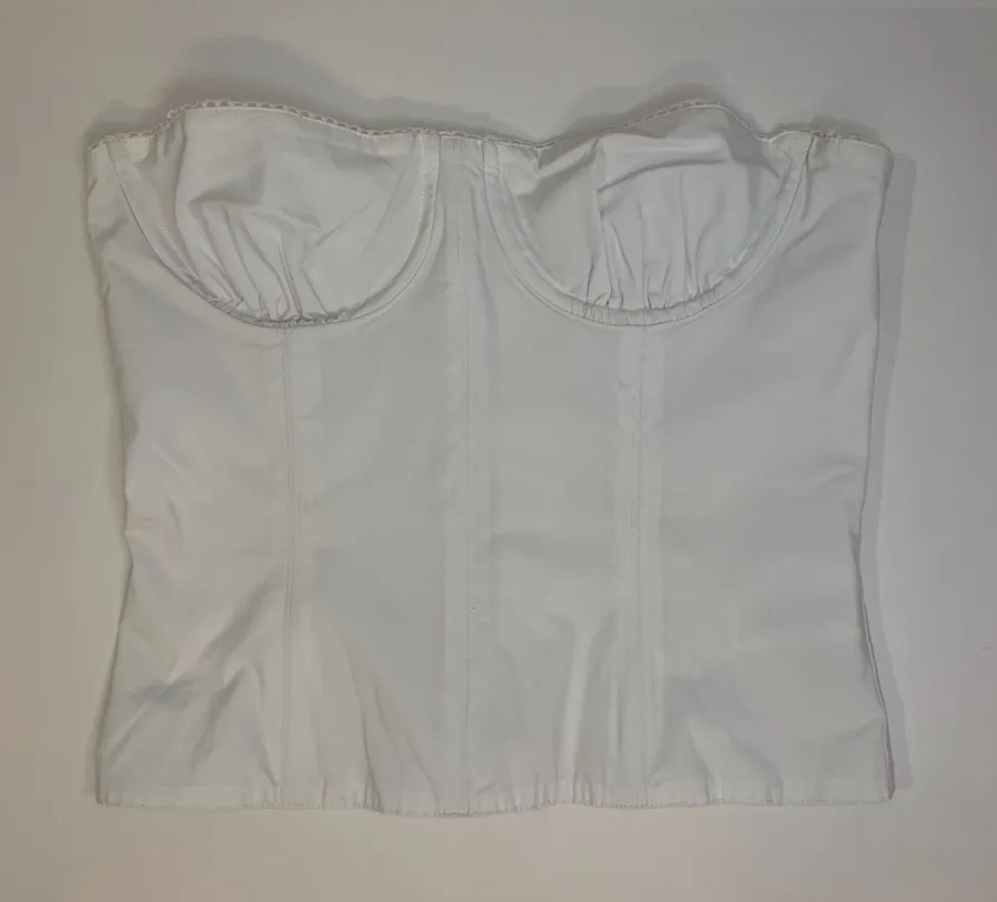Danielle Bernstein Women’s Off-The-Shoulder Underwire Corset Top Size 4. Great condition. Designed for a flattering fit, this off-the-shoulder corset top is accented with delicate picot trim edging. Off-the-shoulder sweetheart neckline Sleeveless Back hook-and-eye closure Underwire Picot trim Ruched Cotton/nylon/spandex.