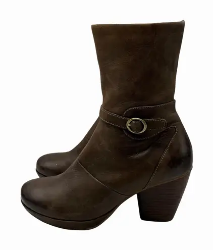 The Dansko Marietta Boots are a stylish and comfortable pair of mid-calf booties designed for women in US sizes 6.5-7 (EU 37). Made of brown leather with a round toe shape and high block heel, these boots feature a zip closure, buckle accents, and a rubber outsole for stability. Ideal for casual occasions in the fall, winter, and spring seasons, these boots offer cushioning and have a platform height of 0.5 inch. The Dansko Marietta Boots are a fashionable option for those looking for a versatile and durable footwear option.