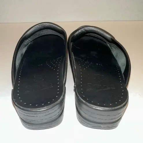 Dansko Women's Sonja Open-Back Clog US 7.5 - 8.0 ** In Great Pre-Owned Condition ** Sonja is a traditional open-back clog that includes all the supportive features of our classic Professional clog in a mule. It is ultra-supportive and easy to wear so you’re always a step away from legendary comfort. Protective heel counter allows the heel to move up and down freely while providing lateral stability Padded instep collar for extra comfort Leather uppers. Nubuck treated 3M Scotchgard™ protector for stain resistance Roomy reinforced toe box allows toes to move comfortably with plenty of "wiggle room" Leather-lined, breathable, single-density open cell PU foam sockliner Contoured PU midsole provides arch support Inner frame provides stability PU outsole with a wide heel strike for stability Anti-fatigue rocker bottom promotes forward foot motion for shock absorption and energy return APMA Seal of Acceptance