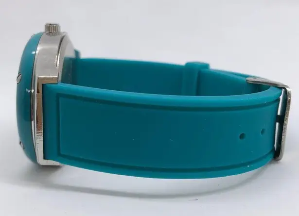 Darice ladies Quartz analog watch 41mm silver tone case dark aqua dial band runs - $10 - From Watch