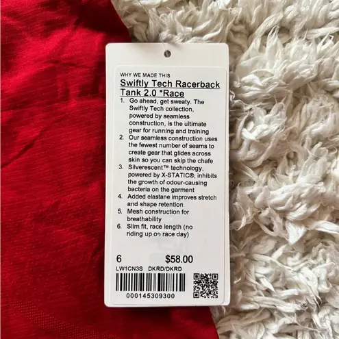 Lululemon Swiftly Tech Racerback Tank 2.0 Race/ Waist Length Size 6 Color: Dark Red Condition: Bran... Show more