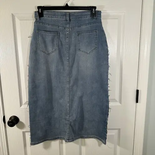 Dani &‎ Davi Women's Large L Midi Denim Skirt Distressed Blue - $30 - From Ls