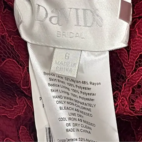 DAVID’S BRIDAL Red Apple Long Lace Mesh Cap Sleeves Lined Front Split Back Zipper Closure Maxi Dress... Show more