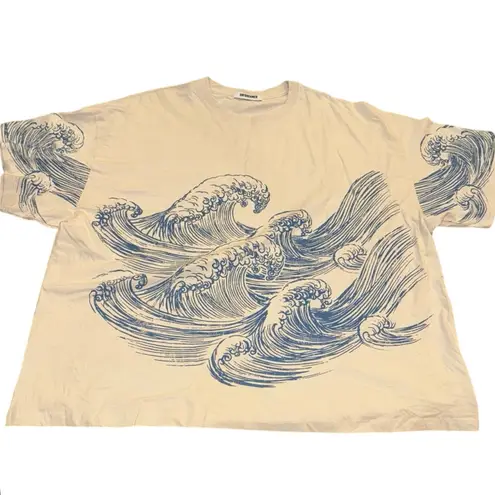 DAYDREAMER Exploded Waves One-Size Tee New without Tag MSRP $88 Color: Vintage white with blue graphic Sold out online on Daydreamer and Free People Keep time by Summers. Catch yourself seaside in a laid-back, crashing waves graphic on a billowy, oversized tee. Bound to land in your rotation for shore. Our best-selling body, the OS Tee is our most oversized fit and length, accented with an open neckline and dropped shoulders. Available in just one size, it's crafted to flatter everyone and thoughtfully designed in our midweight cotton to achieve the perfect drape. Model wears size OS. 100% Cotton. Hand wash cold, lay flat to dry. Note: this listing is for the cream version. The stock photos in other colorways are included to show detail and contrast.