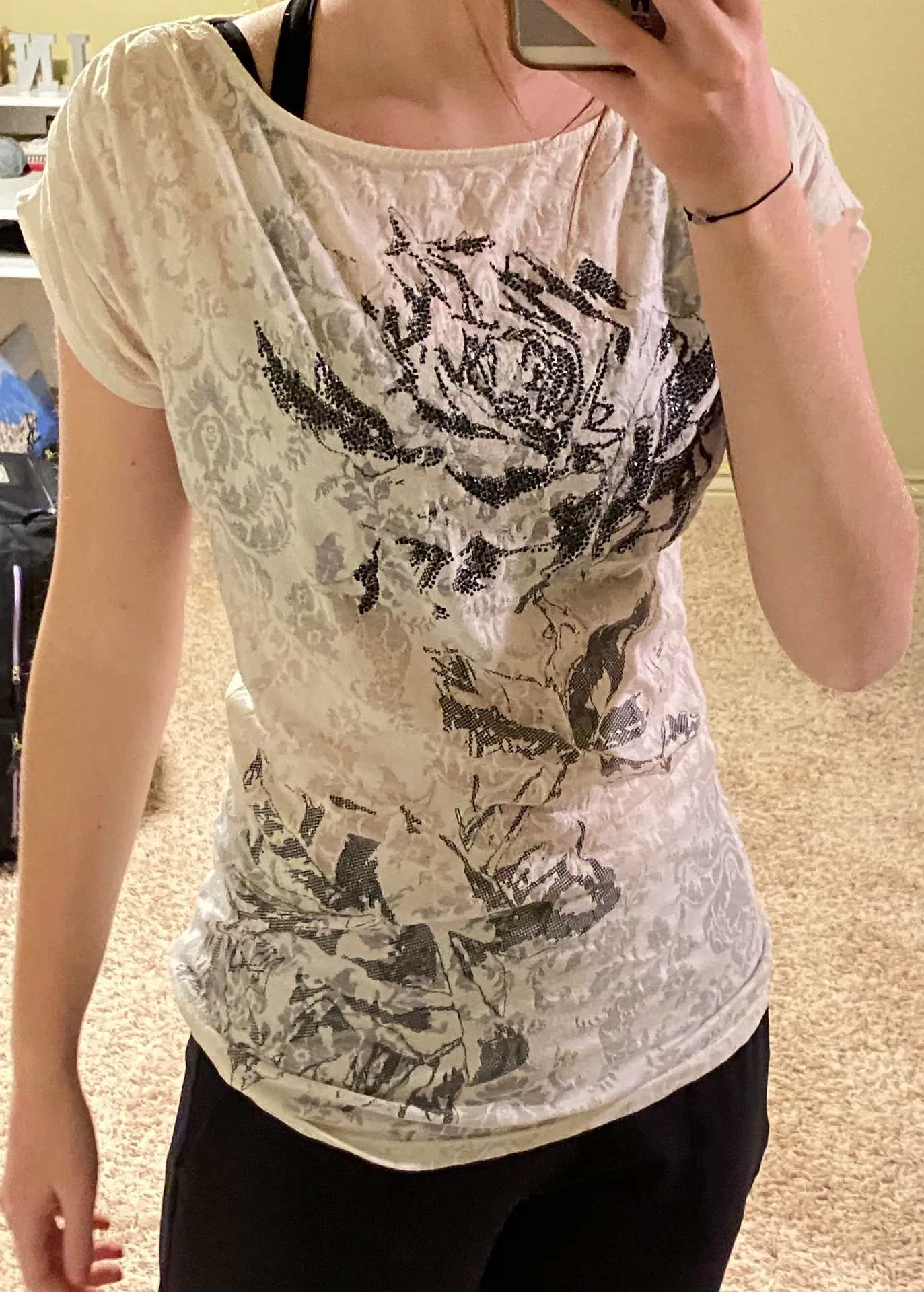 White Tee with Flower Detail Size M - $11 (45% Off Retail) - From Caitlin
