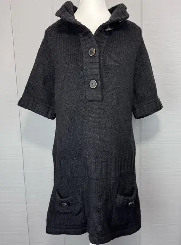 Demylee gray wool and cashmere blend mini drop waist short sleeve sweater dress. Chunky button accents. Can be worn open or as a turtleneck. Size L. Very good condition except for a little piling. Pit to pit: 20” Length: 32” Sleeve: 9”