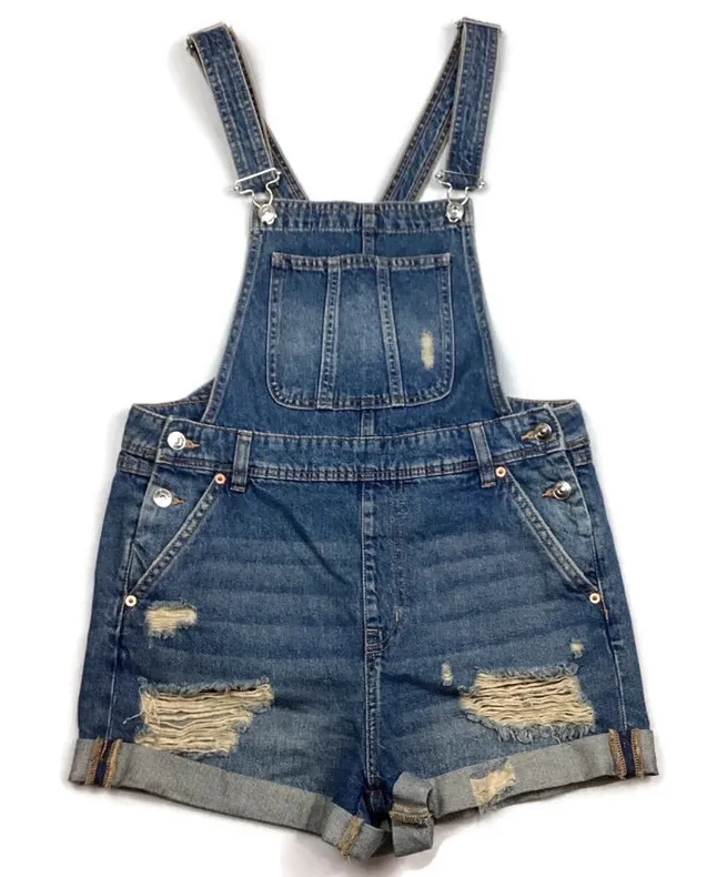Divided Jean Shortalls Shorts. Size 6. Material is faded, distressed with distress holes. Material... Show more