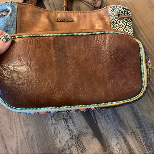 Desigual Shoulder Bag Purse w/ Floral Patterns Embroidered Shells Lining Denim - $26 - From T