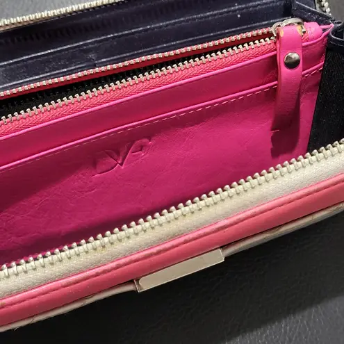 Diane Von Furstenberg embossed genuine leather in white python with hot pink pops continental zip ar... Show more