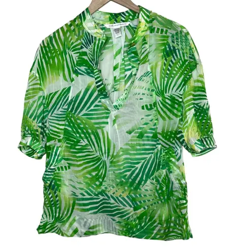 Excellent preloved condition Diane Von Furstenberg Green Palm Leaf Tropical Print Blouse Size 4 Cott... Show more
