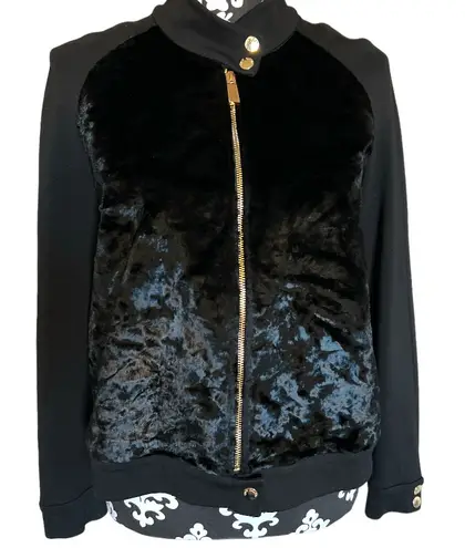 Vince Camuto black ponte full zip jacket with faux fur panel- front - size small - excellent nwot c... Show more