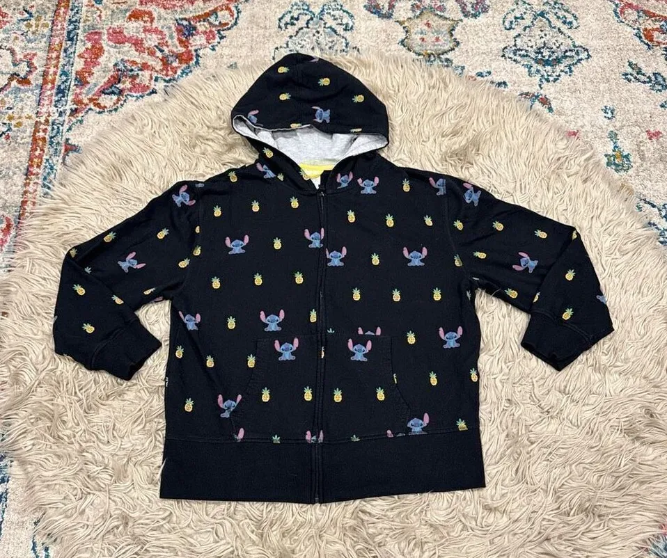 Disney lilo and stitch themed hoodie with stitch and pineapple all over print. Excellent condition.... Show more