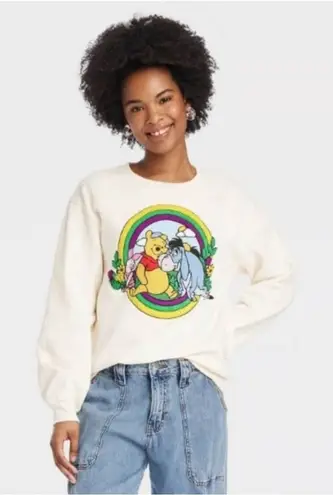 Disney Women's Winnie the Pooh Chenille Patch Graphic Sweatshirt Cream Size XL