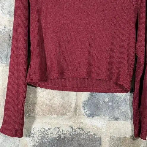 Divided Crop Top Woman's Medium Pearl Accent Ribbed Holiday Party Festival Long sleeve crop top with... Show more