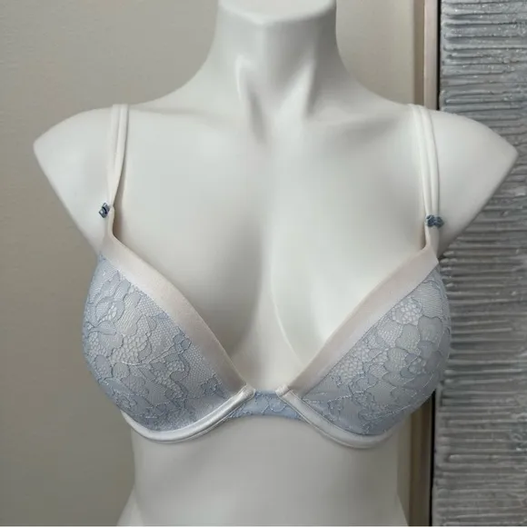 DKNY Lace Push Up Bra Size 34D Women White/Blue Gently Used in Great Condition!