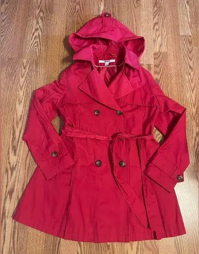 DKNY WomenRed Belted Lined Removable Hood Trench Coat Size Petite Medium Pit to pit: 19.5” Length: 3... Show more