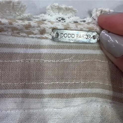 Bohemian off-white printed top. -Ties at neck and under bust -Bracelet length sleeves -Features eyelets, tassels, and allover embroidery -100% cotton -Designed in Israel Size Large excellent Conditkon FIT TIP Fits true to size. FABRIC / MATERIAL -100% cotton