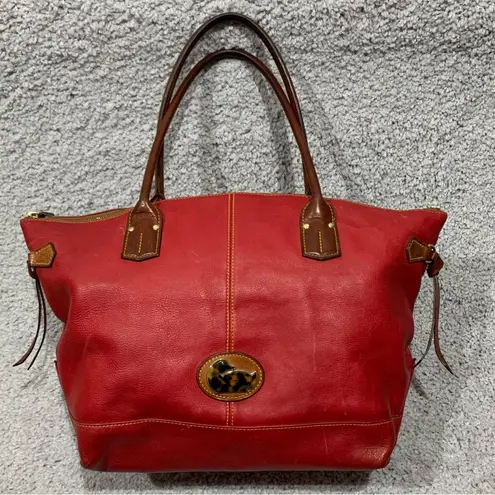 smooth red dye leather in excellent condition. big enough to be a weekend bag, stylish diaper bag, l... Show more