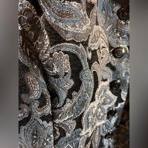 Elegant paisley design. Button closure. Long sleeves. Perfect for formal occasions. Layering piece g... Show more