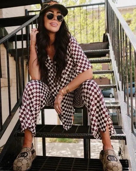 Dressed in lala Checkered Women's satin set S Black - $135 - From Miya