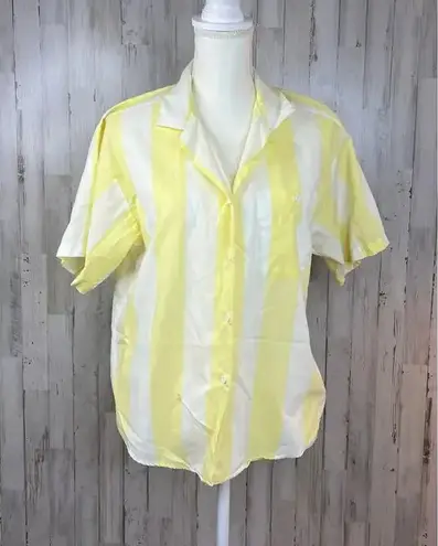 Dunloggin Women's 14 Yellow Striped Short Sleeve Linen Blend Button-Up Shirt All orders ship next b... Show more